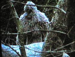 This Bigfoot thrives on human poon. Though this hardcore porno claims to be filmed on location in Washington, Oregon and Alberta, it appears to have all been shot on a few rural acres in a single afternoon for $50. According to the film's foreward: "In the wild, untamed regions of the Northwest part of our continents [sic] strange stories have been unfolding for two hundred years. There is a legend OF A MAMMOTH BEING. PART ANIMAL, PART HUMAN. IT'S [sic] GROTESQUE FORM has on occasion BEEN SEEN by some. OTHERS SCOFF AT IT'S [sic] EXISTANCE [sic], yet all RESPECT IT -- THEY CALL IT THE 'SASQUATCH' We call it -- "THE GEEK." A scientific expedition of three men and three women spends more time having sex than tracking Bigfoot, and when they finally meet him, Bigfoot rapes the women and fights off their boyfriends. You can actually see Bigfoot's pasty white weiner poking through his greasy black costume.![]()